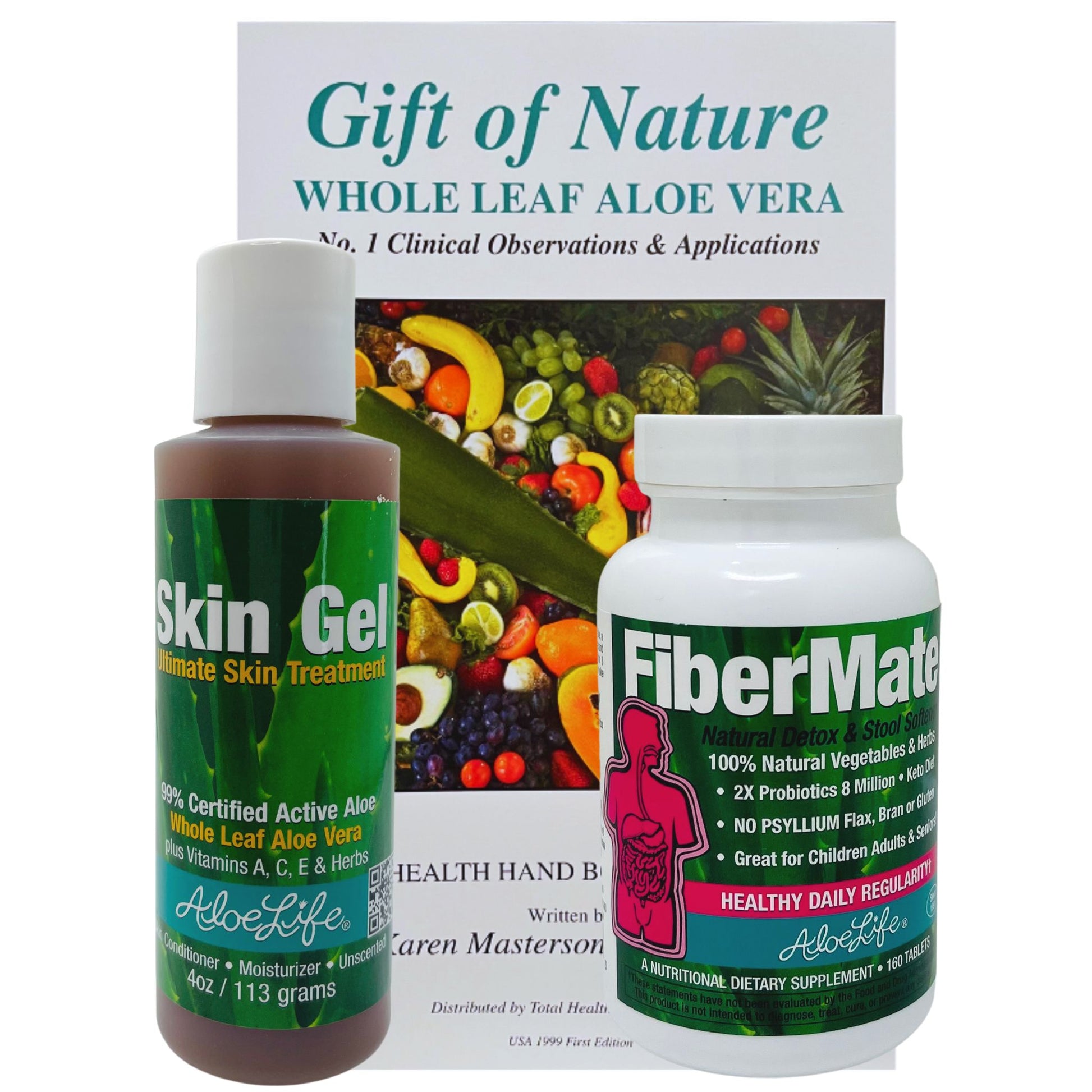 Healthy Skin & Digestion Bundle - 15% DISCOUNT FiberMate Tablets and Skin Gel 4oz & Gift of Nature Book
